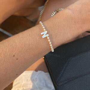 Pulsera beads & gold inicial nacar