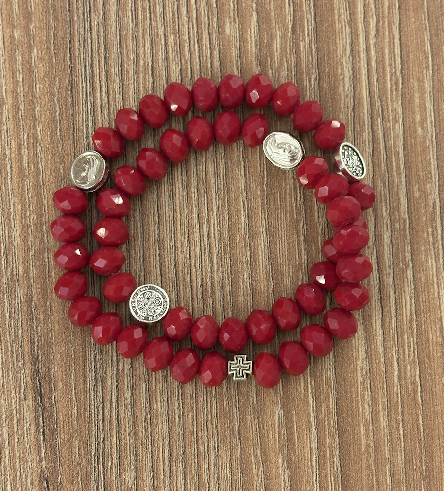 Pulsera rosario beads cherry red